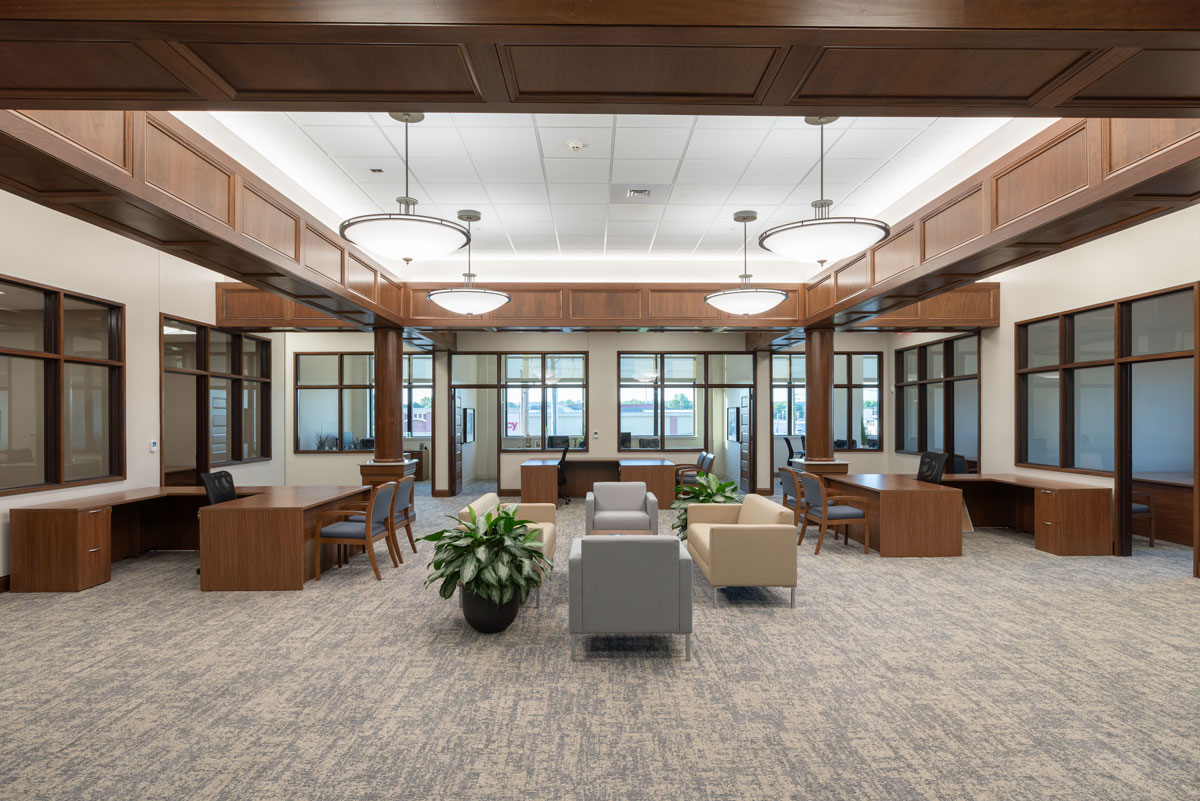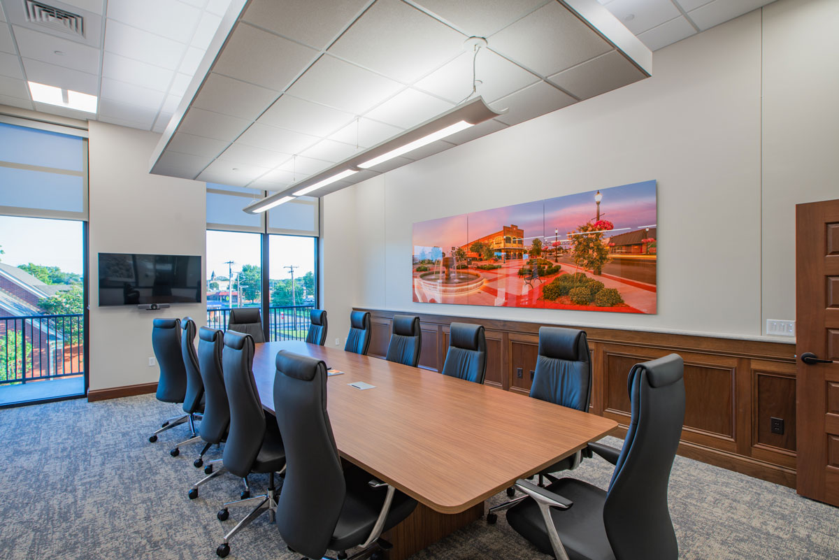 A notable highlight of this project is the 60-person community room on the second floor, complete with accessible balconies for a bird’s-eye view of downtown. Equipped with full audio-visual capabilities and a catering kitchen, the space is provided at no cost to nonprofits, civic clubs, and other community groups.