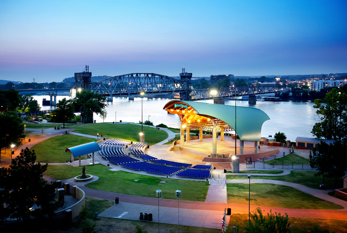 In addition to the main stage roof, Flynco constructed a smaller, matching structure over the sound control booth, ensuring architectural consistency throughout the venue. Close coordination and streamlined scheduling allowed the amphitheater improvements to be completed on time and on budget, debuting seamlessly for the Riverfest Music Festival. This success of this project was only possible due to close collaboration with the Architect and the Little Rock Convention & Visitors Bureau.