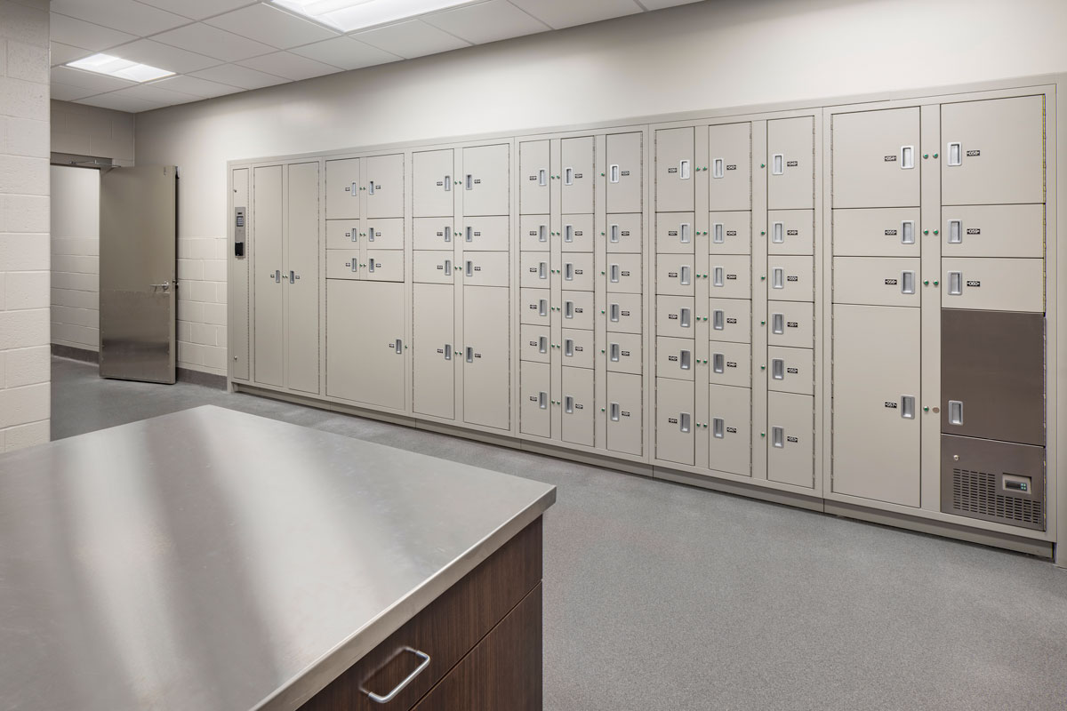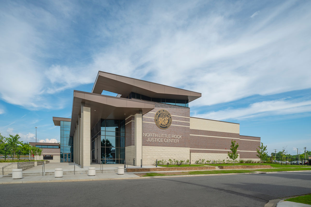 The new North Little Rock Justice Center spans 82,000 square feet and serves as a consolidated hub for the city’s police force, district courts, and Information Technology Department. Designed with a sleek brick-and-glass exterior, the building includes a 5,000-square-foot public meeting room that can host up to 100 community members, fostering a spirit of collaboration and community policing. By housing multiple departments under one roof, the center streamlines operations and provides essential amenities for law enforcement, from workout spaces to digital training rooms, all within a single, state-of-the-art facility.