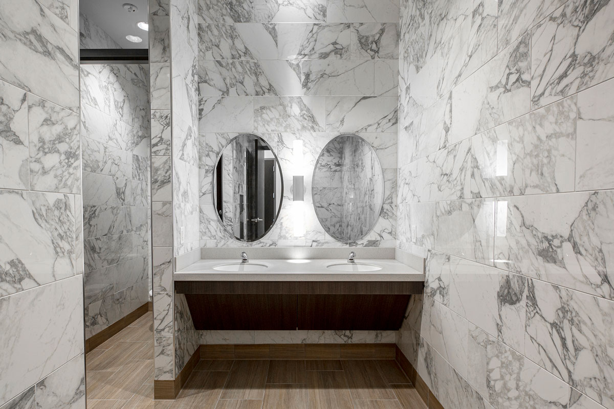 Attention to detail is evident throughout the building, from the abundant natural light to upscale finishes such as white tile-lined bathroom walls, fully enclosed private stalls, and premium fixtures. The layout supports both collaborative work and executive operations, blending modern design with practical use. Flynco’s construction team delivered the project on time and to the highest quality standards, creating a professional environment tailored to the client’s vision and long-term operational needs.